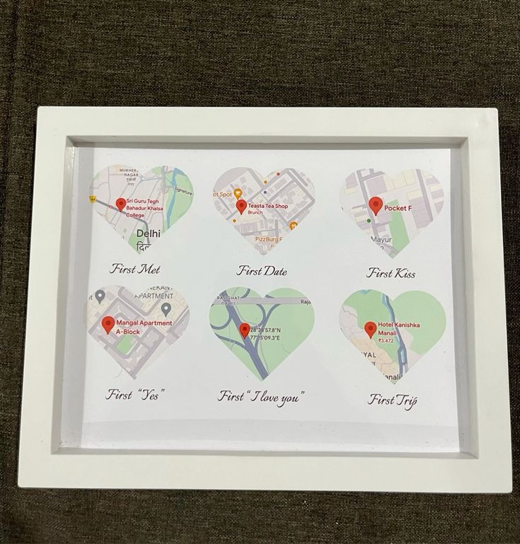 Capture the most meaningful moments of your story with our beautifully handcrafted Mapped With Love Frame. Featuring heart-shaped maps that mark special milestones—where you met, your first date, got engaged, and your home—this timeless keepsake turns memories into art and adds a heartfelt touch to any space.